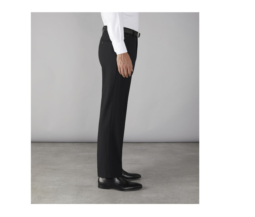 Pantalon moderne simple 1 pli. Passants pour ceinture. 2 poches avant. Anneau pour clef. Lavable en machine. 2 longueurs sur certaines tailles, U: bas non cousu).