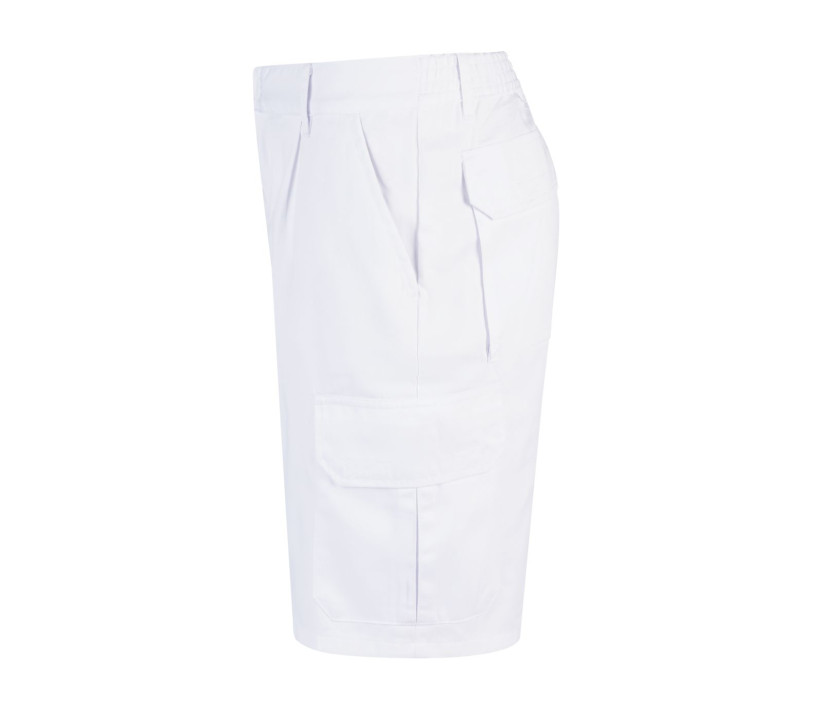 Fermeture zippée avec bouton. Taille élastiquée. Couture arrière de sécurité. Pinces sur le devant . Six poches : 2 poches latérales. 2 poches sur les cuisses avec fermeture à rabat et Velcro®. 2 poches arrière avec rabat et Velcro®.