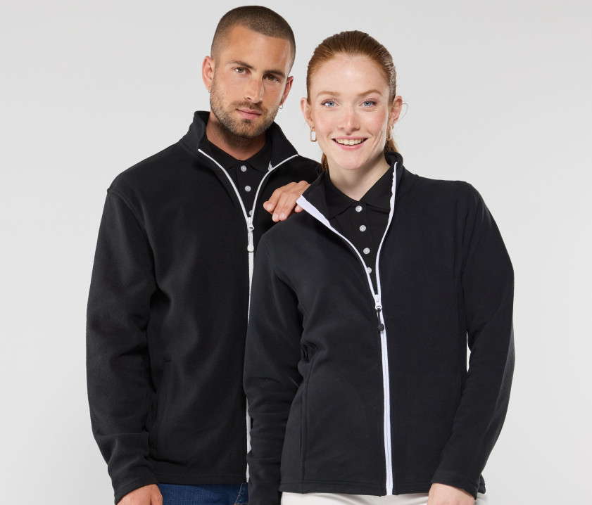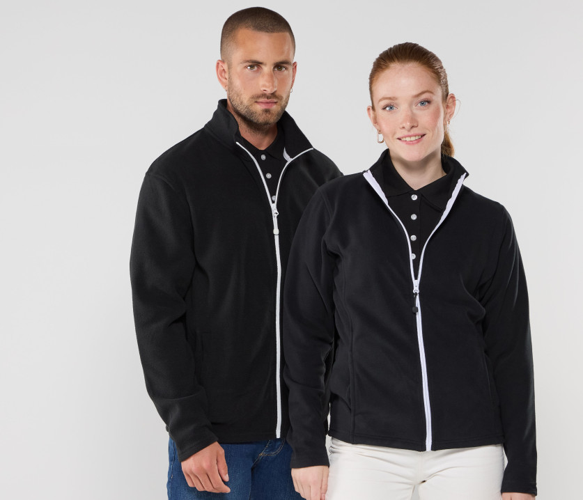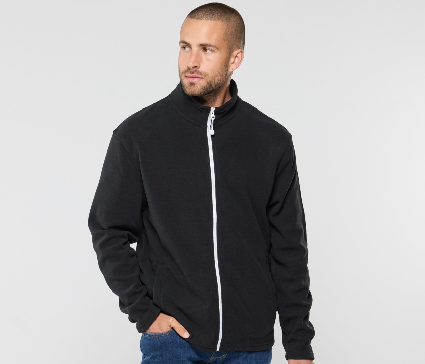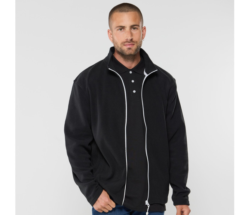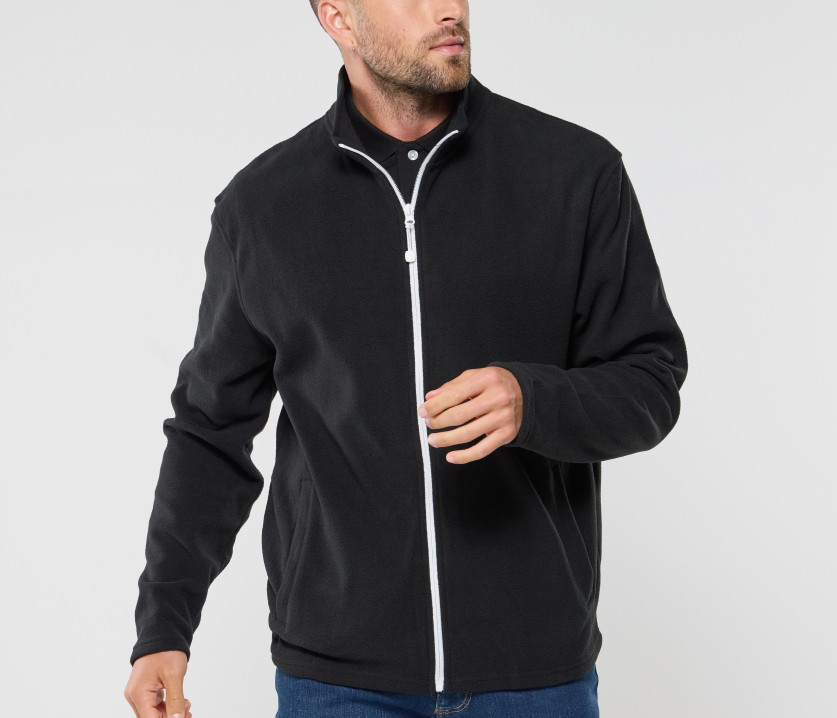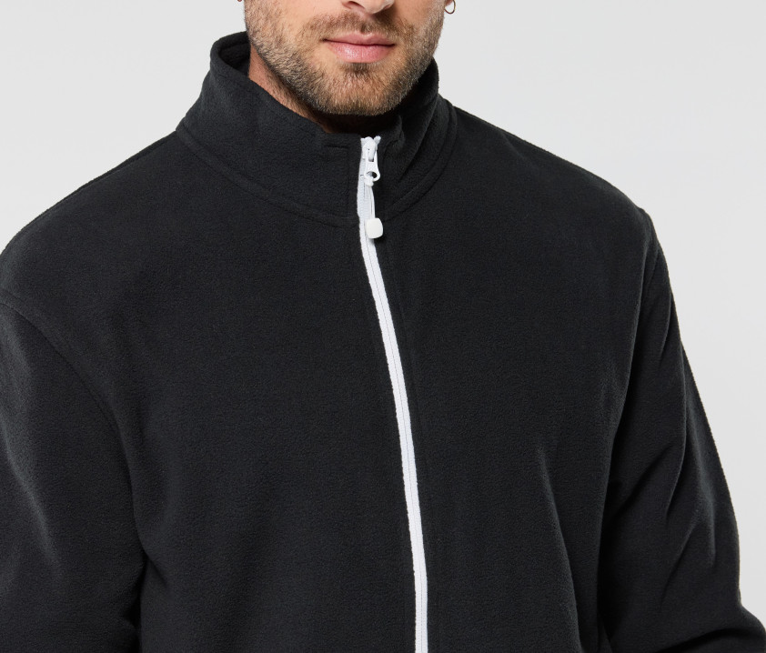 Veste grand zip. Anti-peluche. 2 poches latérales. Bande de propreté en twill.
