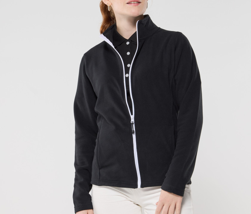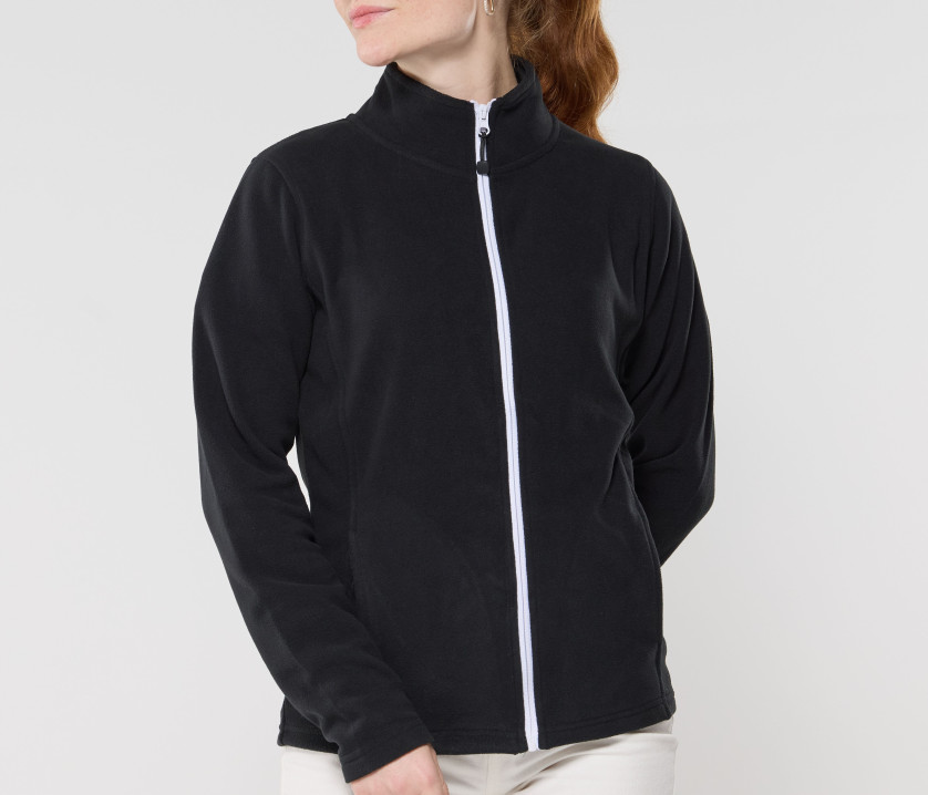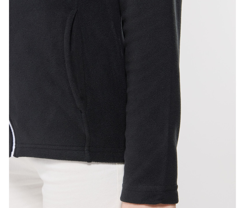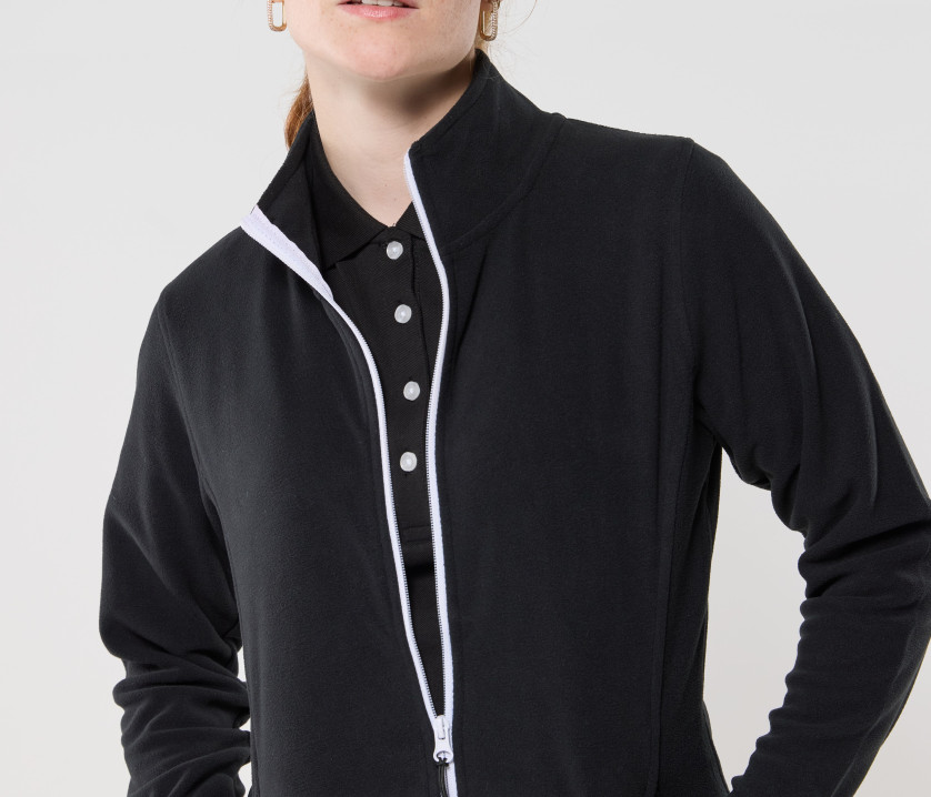Veste grand zip. 2 poches latérales. Bande de propreté en twill. Coupe cintrée. Anti-peluche.