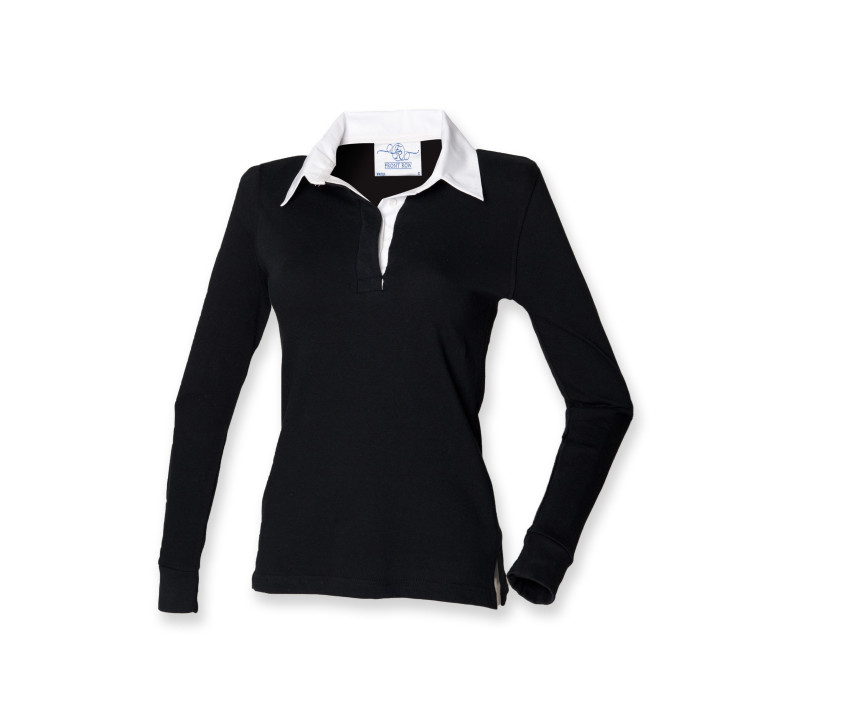 Polo rugby traditionnel disponible en homme et en enfant. Col et patte de boutonnage blanc. Poignets avec élasthanne. Fentes latérales. Coupe ajustée.