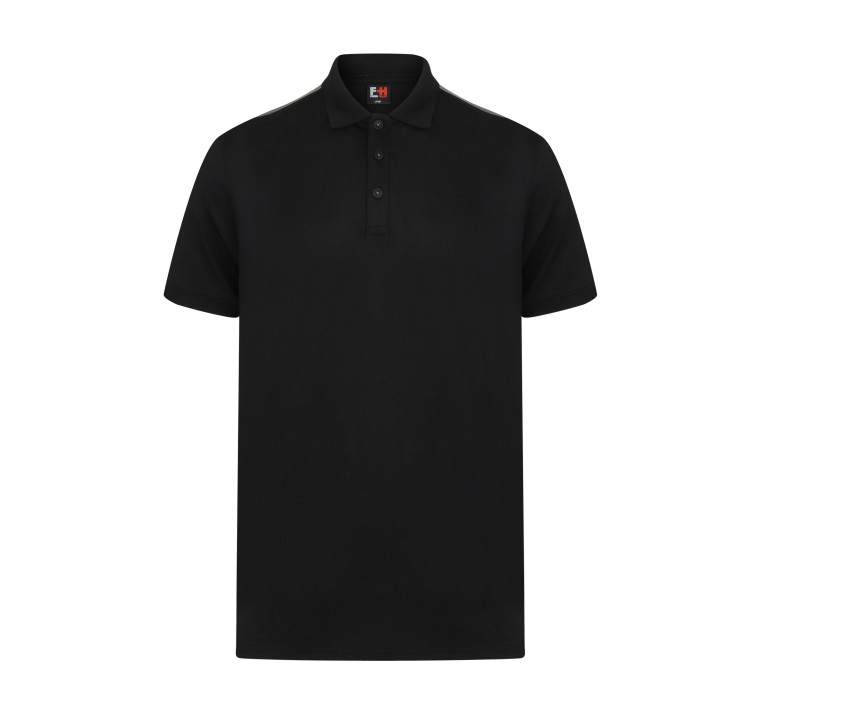 Matière stretch avec technologie anti-humidité. Coupe ajustée. Bandes contrastées épaules et manches. Col et emmanchures en bords côte. Manches droites. Plaquette 3 boutons ton sur ton et coutures contrastées. Étiquette détachable.