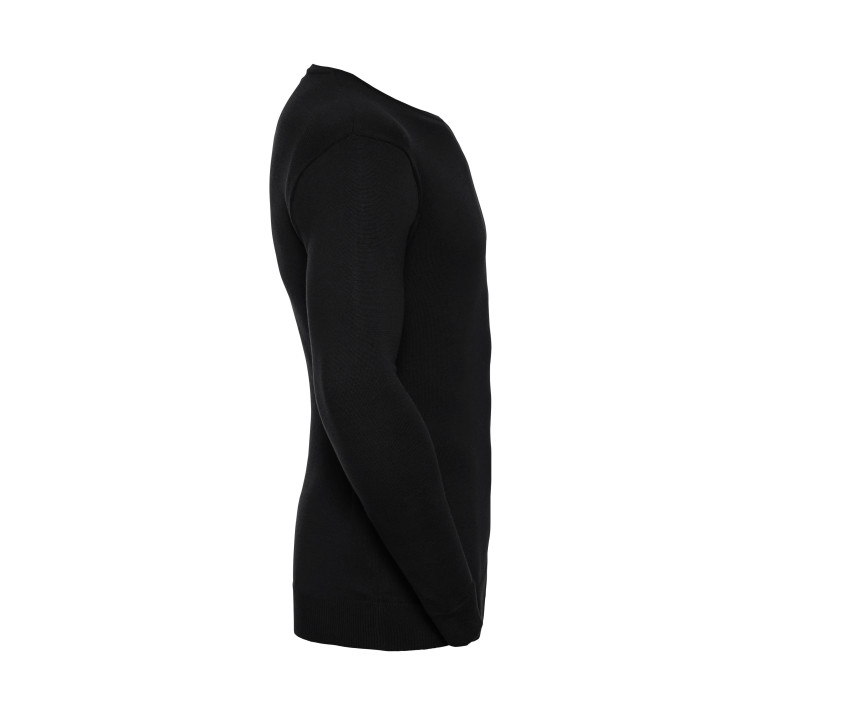 Col V. Manches droites. Poignets, col et bas en côte 1x1 en Lycra®. Lavable à 40°C.