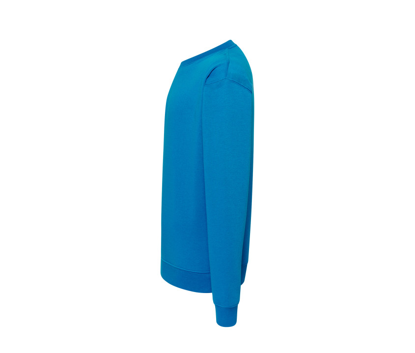 Sweat unisexe - Double piqûre col, manches et taille. Bord côte 1x1 avec Lycra® au col, aux poignets et à la taille. Col rond. Stock en conversion : polyester/coton vers coton/polyester recyclé. Intérieur gratté.