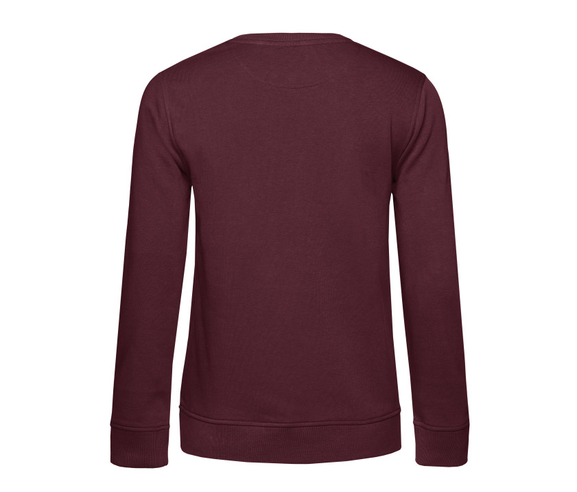 Sweat col rond organique ou organique en conversion femme. Sans étiquette de marque. Coutures latérales. Coupe féminine. Coton organique. Col, poignets et taille en bords côte. Manches droites. Bande de propreté en chevron. Face extérieure en 100% coton. Intérieur non gratté. Tissu résistant et toucher ultra-doux.
