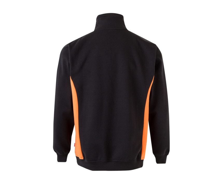 Col montant zippé. Côtés et intérieur du col contrastés. Poignets et taille en bords côte. Traité anti-peluche.