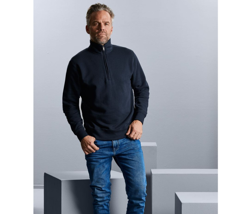 Coupe moderne et ajustée. Face externe 100% coton pour une meilleure tenue. Bande de propreté en chevrons au col. Bord côte taille et poignets plus larges. Surpiqûres aux emmanchures, aux poignets et à la taille. Coutures latérales. Col officier de la même matière. Fermeture éclair 1/4 YKK en métal (Argent antique)