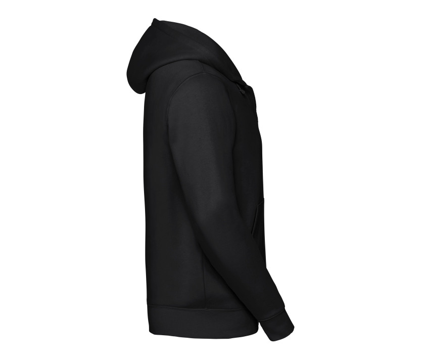 Coupe droite. Fermeture éclair YKK®. Zip bord à bord permettant une impression sur toute la largeur de la poitrine. Large cordon de serrage plat. Capuche double épaisseur avec cordon de serrage protégé par un ourlet. Bande de propreté en chevron. Accès écouteurs MP3.