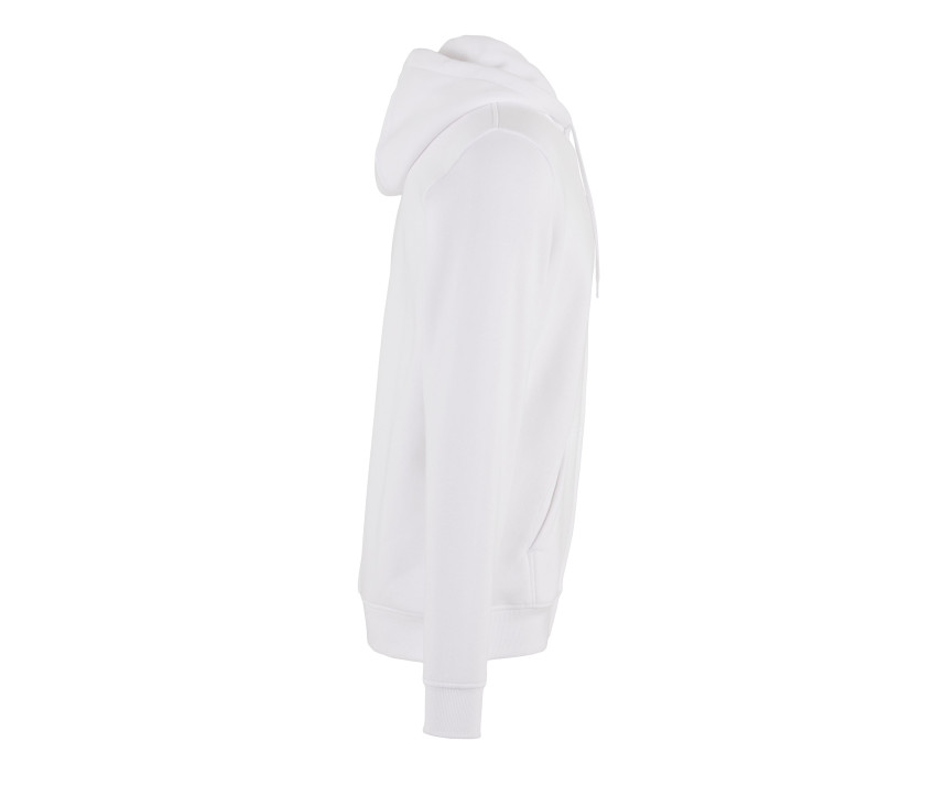 Sweat grand zip dissimulée. Intérieur en molleton gratté. Sans étiquette de marque, puce de taille uniquement. 2 poches frontales. Manches droites. Bords côte à la taille et aux manches. Double coutures sur capuche. Capuche doublée.