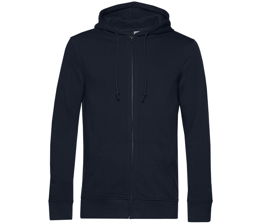 Sweat-shirt zippé à capuche, organique ou organique en conversion et au design tendance. Coutures latérales pour une coupe parfaitement adaptée aux silhouettes masculines. Sans étiquette de marque. Bande de propreté en chevrons. Fermeture Éclair métallique couverte. Capuche doublée avec cordons. 100% coton à l’extérieur. French Terry: intérieur non gratté. Tissu résistant et toucher ultra-doux.