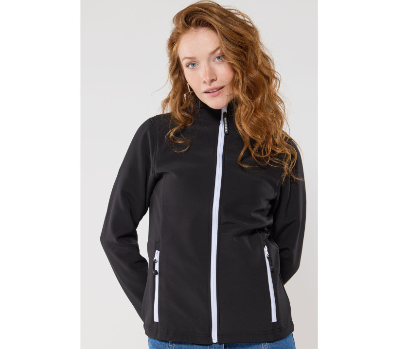 Softshell femme. Doublure polaire. Zip inversé. Manches montées. 2 poches intérieures en filet. 2 poches zippées sur les côtés. Protection menton. Bodywarmer réf. PK330 page 185.