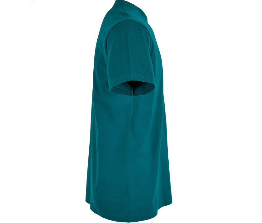 Coton doux et très confortable. Col en bord côte. Double couture à la taille. Coupe longue et près du corps. Finition en jersey. Adapté aux impressions flex légères ou à la sérigraphie. Sans étiquette de marque, uniquement une puce de taille.