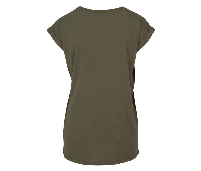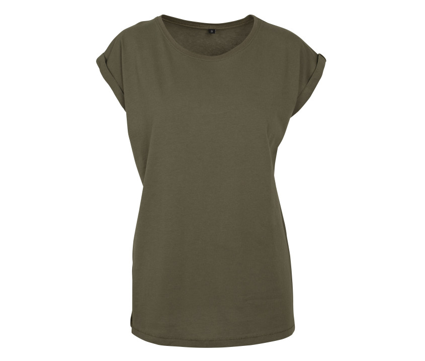 Tee-shirt femme - Coupe longue. Manches courtes et amples. Bouts de manches repliés.