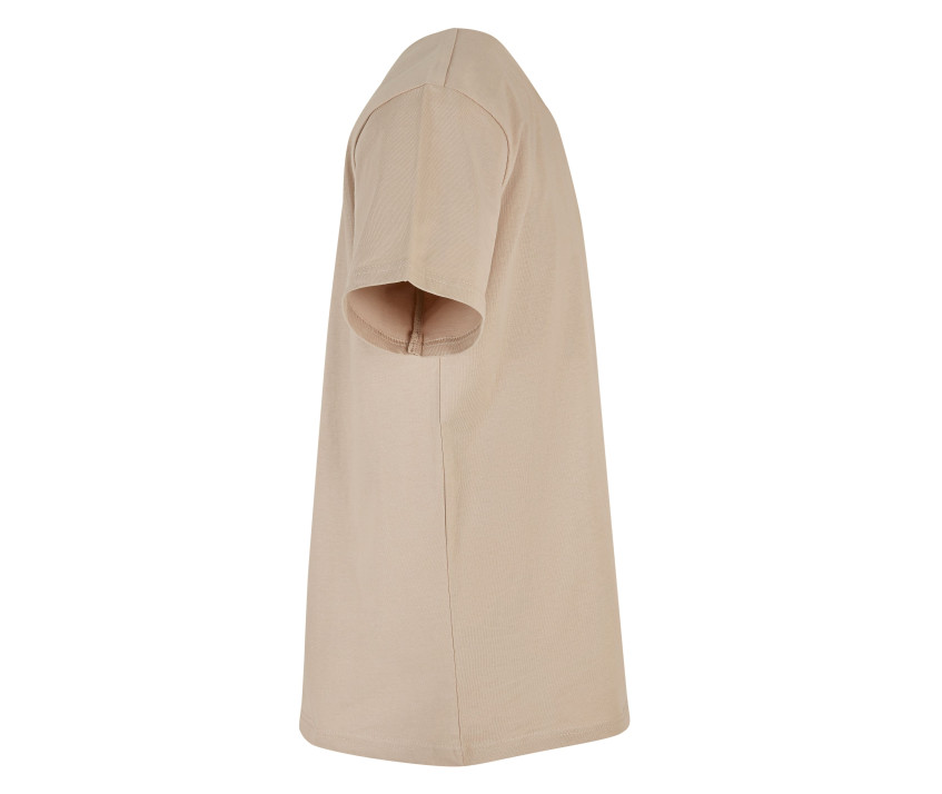 Tee-shirt large. Coupe sobre et classique. Col rond. Épaules tombantes. Coutures latérales. Double coutures col, manches et taille. Sans étiquette de marque, uniquement une puce de taille. Coloris Ready To Dye (Prêt à teindre) : Mensurations décalées d'une taille par rapport à la teinture.