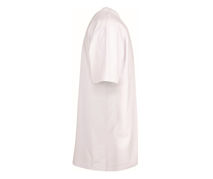 Tee-shirt large. Coupe sobre et classique. Col rond. Épaules tombantes. Coutures latérales. Double coutures col, manches et taille. Sans étiquette de marque, uniquement une puce de taille. Coloris Ready To Dye (Prêt à teindre) : Mensurations décalées d'une taille par rapport à la teinture.