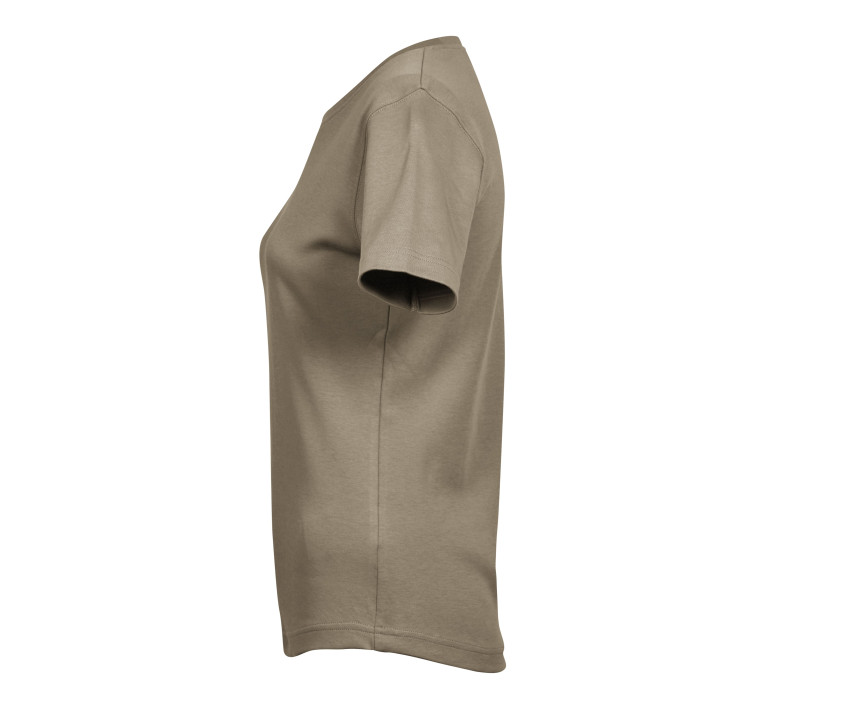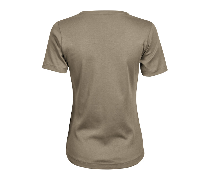 Tee-shirt femme - Coupe ajustée. Col en bords côte. Double couture. Lavé aux enzymes.