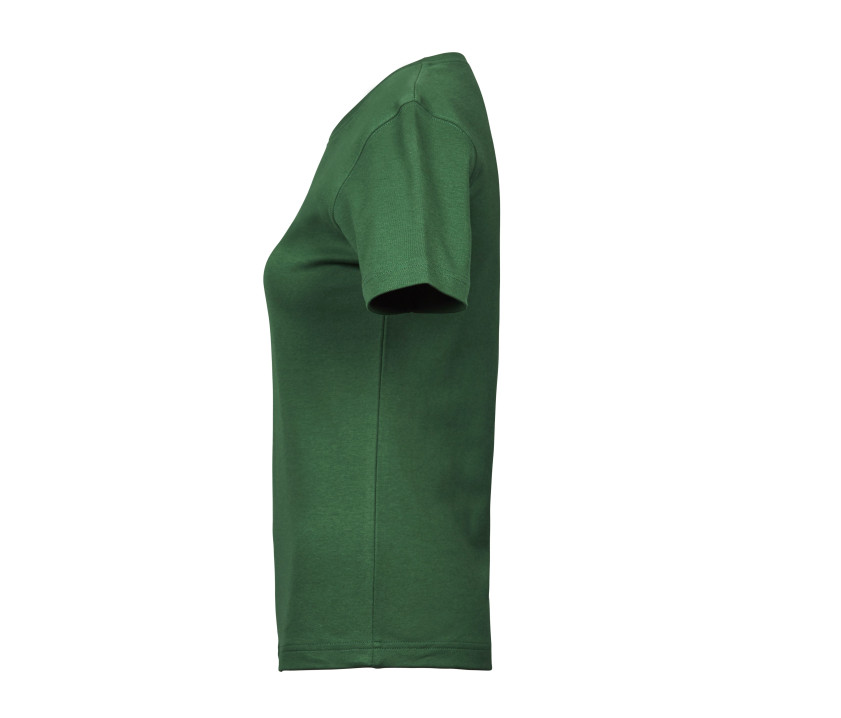 Tee-shirt femme - Coupe ajustée. Col en bords côte. Double couture. Lavé aux enzymes.