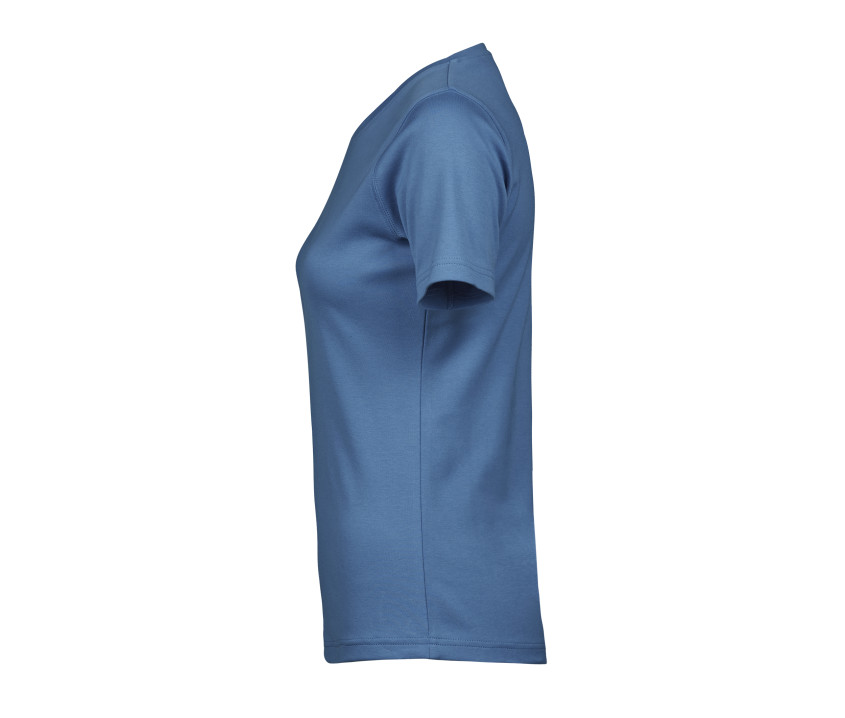 Tee-shirt femme - Coupe ajustée. Col en bords côte. Double couture. Lavé aux enzymes.