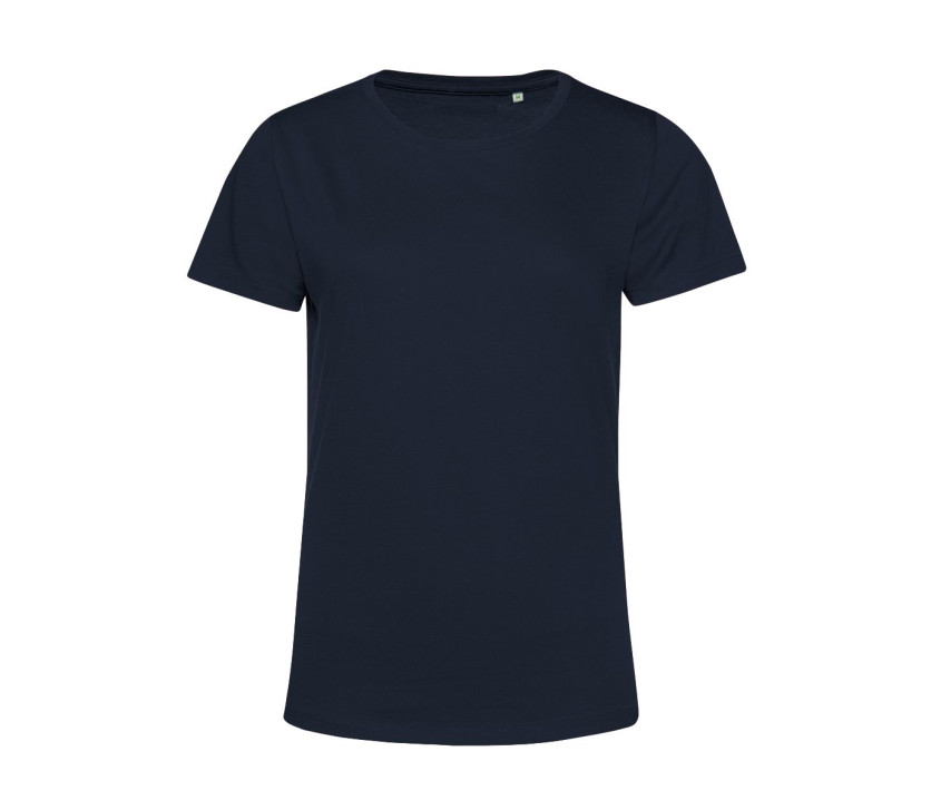 Tee-shirt femme col rond 150 organique ou organique en conversion. Coutures latérales. Coupe féminine. Col en bords côte 1x1. Sans étiquette de marque. Matière résistante et toucher ultra-doux.