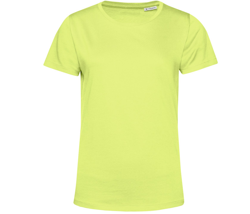 Tee-shirt femme col rond 150 organique ou organique en conversion. Coutures latérales. Coupe féminine. Col en bords côte 1x1. Sans étiquette de marque. Matière résistante et toucher ultra-doux.