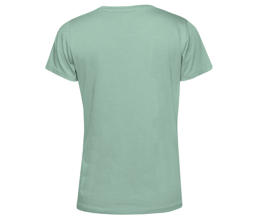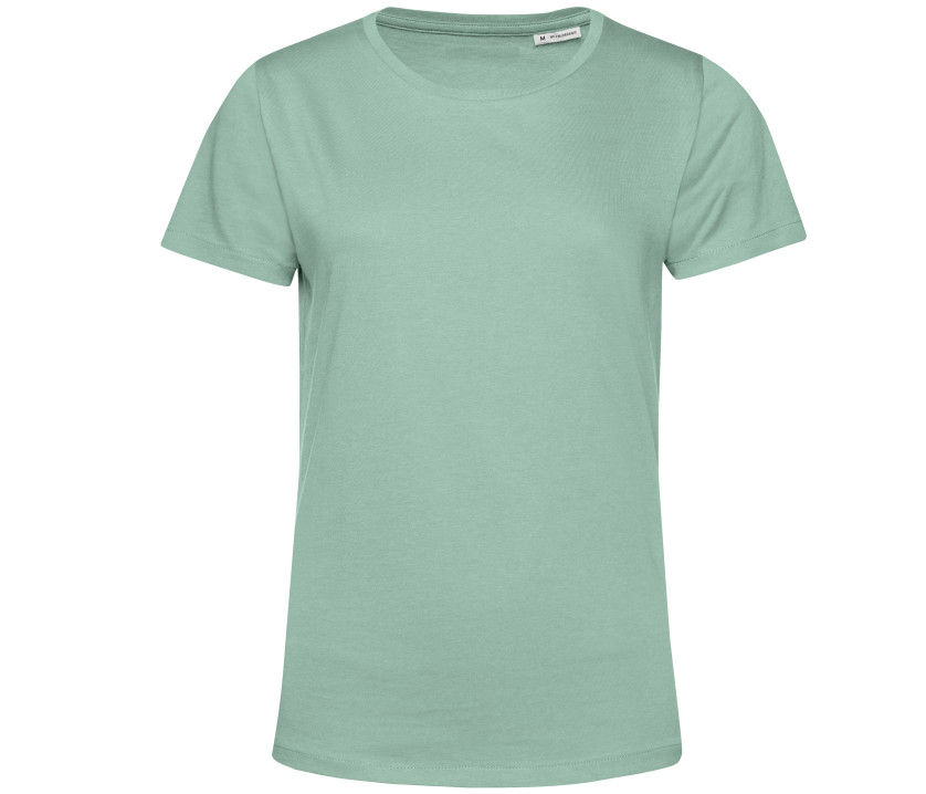 Tee-shirt femme col rond 150 organique ou organique en conversion. Coutures latérales. Coupe féminine. Col en bords côte 1x1. Sans étiquette de marque. Matière résistante et toucher ultra-doux.