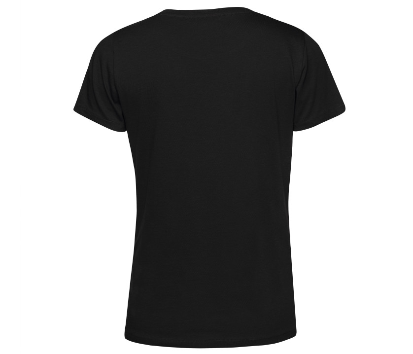 Tee-shirt femme col rond 150 organique ou organique en conversion. Coutures latérales. Coupe féminine. Col en bords côte 1x1. Sans étiquette de marque. Matière résistante et toucher ultra-doux.