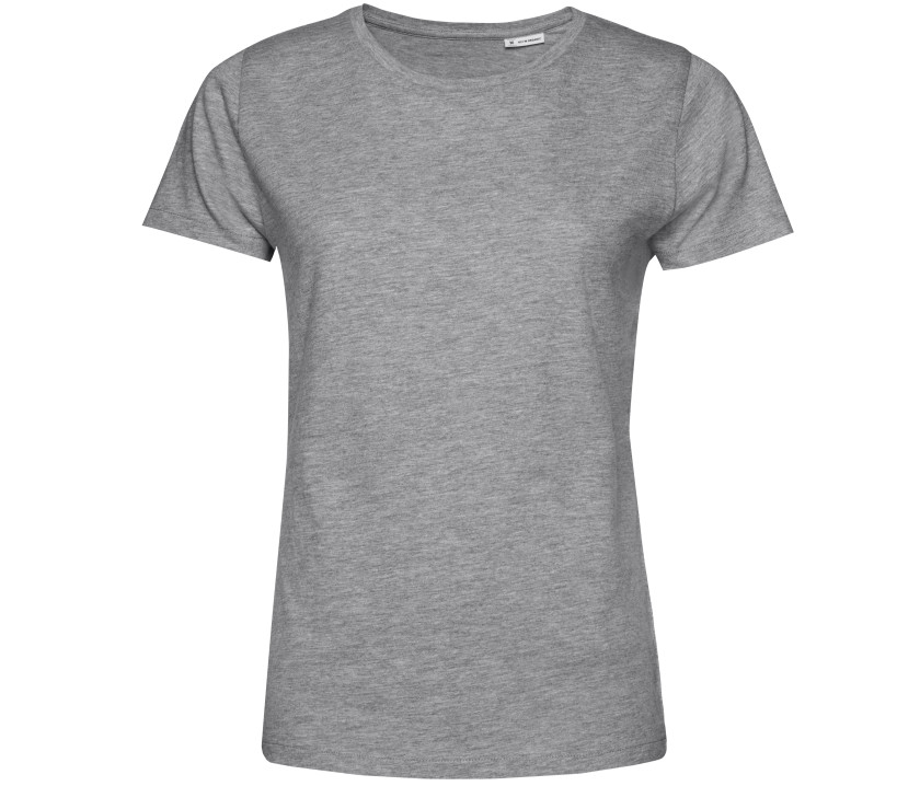 Tee-shirt femme col rond 150 organique ou organique en conversion. Coutures latérales. Coupe féminine. Col en bords côte 1x1. Sans étiquette de marque. Matière résistante et toucher ultra-doux.