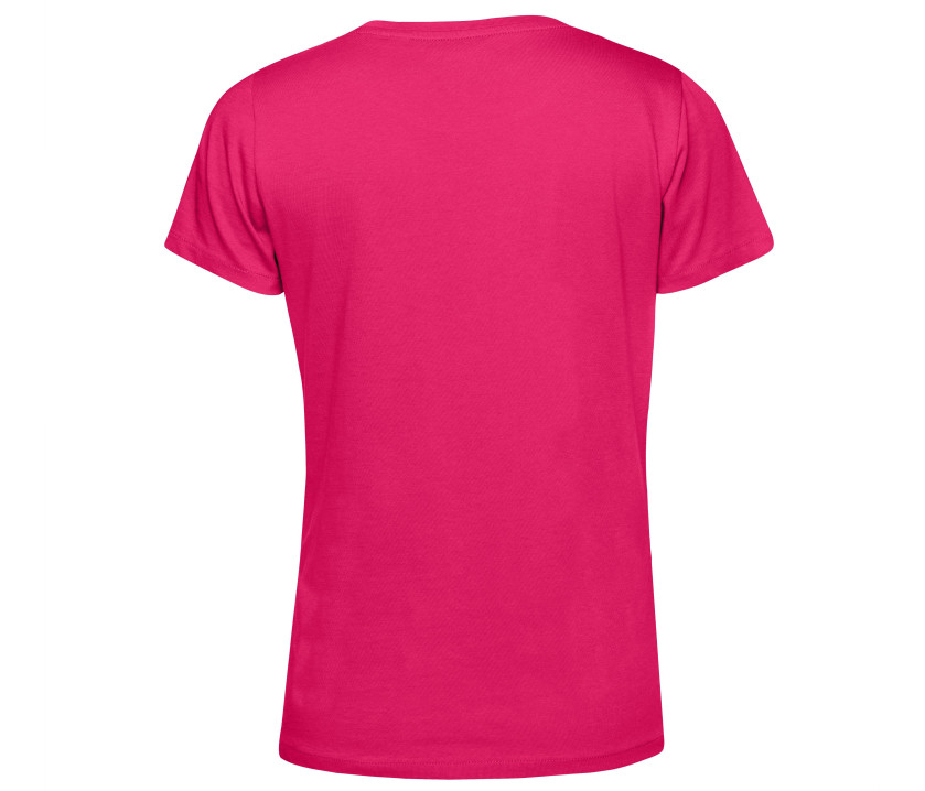 Tee-shirt femme col rond 150 organique ou organique en conversion. Coutures latérales. Coupe féminine. Col en bords côte 1x1. Sans étiquette de marque. Matière résistante et toucher ultra-doux.