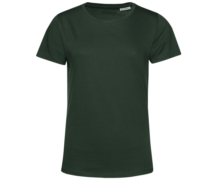 Tee-shirt femme col rond 150 organique ou organique en conversion. Coutures latérales. Coupe féminine. Col en bords côte 1x1. Sans étiquette de marque. Matière résistante et toucher ultra-doux.