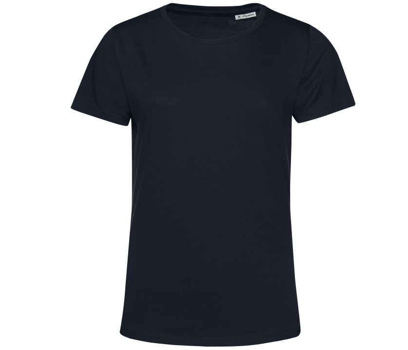 Tee-shirt femme col rond 150 organique ou organique en conversion. Coutures latérales. Coupe féminine. Col en bords côte 1x1. Sans étiquette de marque. Matière résistante et toucher ultra-doux.